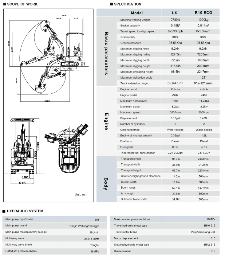 ✔ R10 ECO with Kubota engine – Reliable Kubota performance for maximum durability